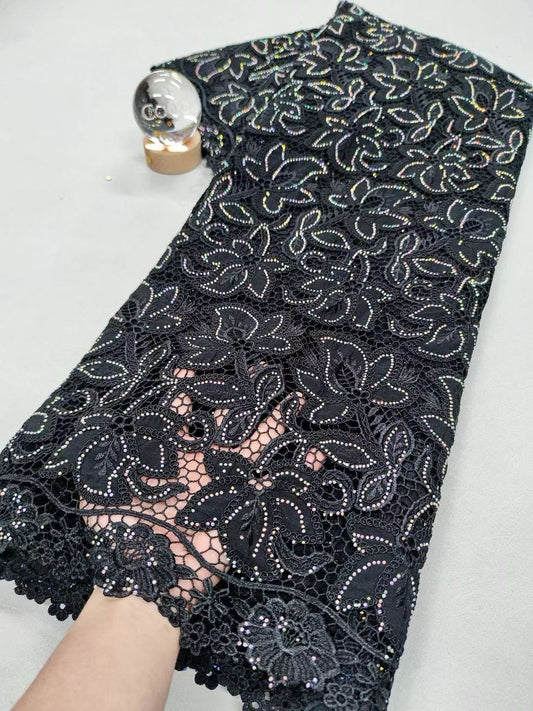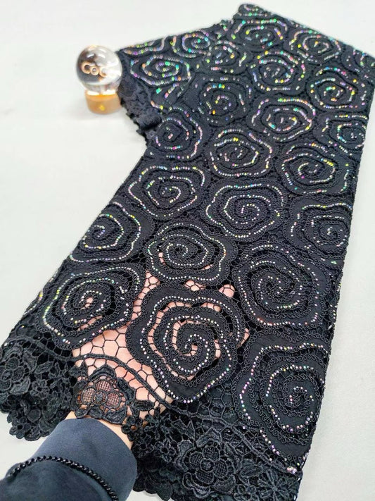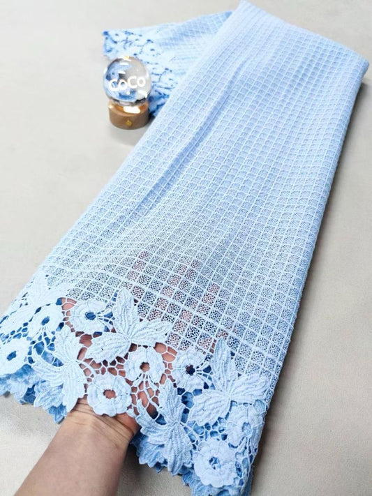 Turquoise Cercle Embroidedered Lace Fabric-5 yards